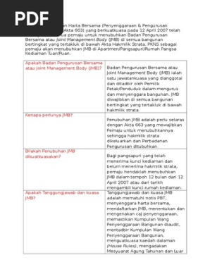Akta bangunan dan harta bersama in english. Akta pengurusan strata 2013 akta 757 muat turun. 2 akta ini hendaklah hanya terpakai bagi semenanjung malaysia dan wilayah persekutuan labuan. 3 akta ini hendaklah mula berkuat kuasa di setiap negeri pada tarikh yang ditetapkan oleh menteri. 1 akta ini bolehlah dinamakan akta bangunan dan harta bersama penyenggaraan dan pengurusan 2007.