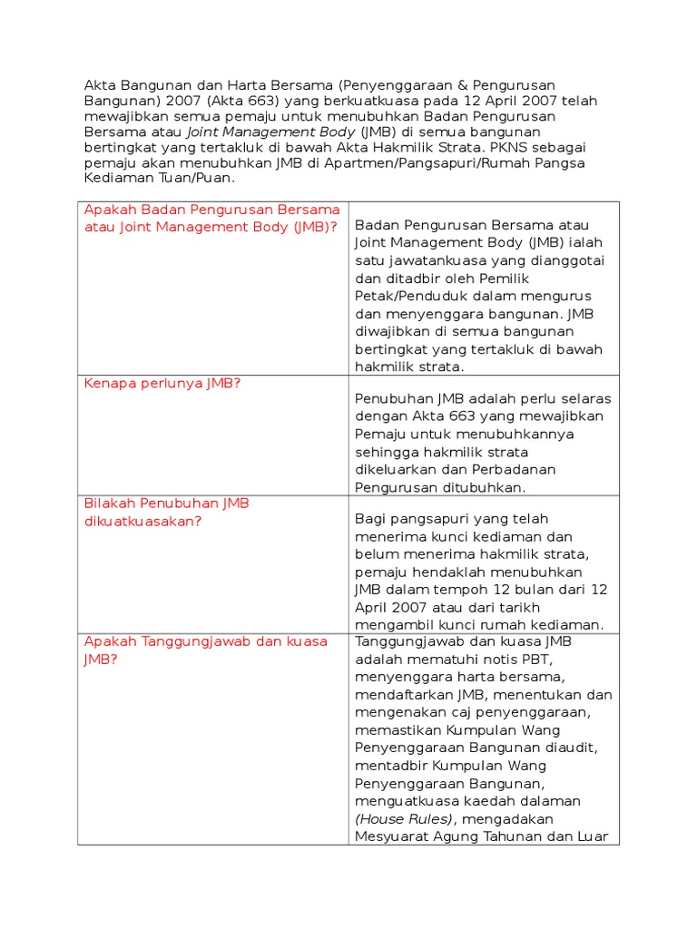 Suatu akta untuk mengadakan peruntukan bagi penyenggaraan dan pengurusan bangunan dan harta bersama dengan sempurna dan bagi perkara perkara yang bersampingan dengannya. Akta bangunan dan harta bersama penyelenggaraan dan pengurusan 2007 akta 663 building and common property maintenance and management act 2007 act 663 applicable by laws undang undang kecil pelesenan tred perniagaan dan perindustrian majlis perbandaran pasir gudang 2017. Akta bangunan dan harta bersama penyenggaraan dan pengurusan 2007 bagi mengatasi masalah penyenggaraan dan pengurusan bangunan dan harta bersama.