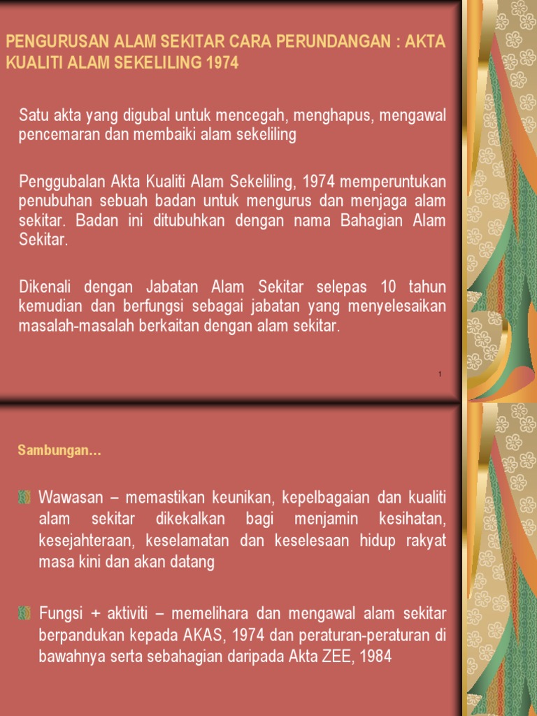 14 mac 1974 tarikh mula berkuatkuasa ditetapkan. Akta alam sekitar yang baharu akan digubal sekiranya ada banyak pindaan perlu dilakukan terhadap akta kualiti alam sekeliling 1974 kata menteri tenaga sains teknologi alam sekitar dan perubahan iklim yeo bee yin. Akta alam sekitar 1974 kumbahan free download as pdf file pdf text file txt or read online for free. 15 april 1975 p u.