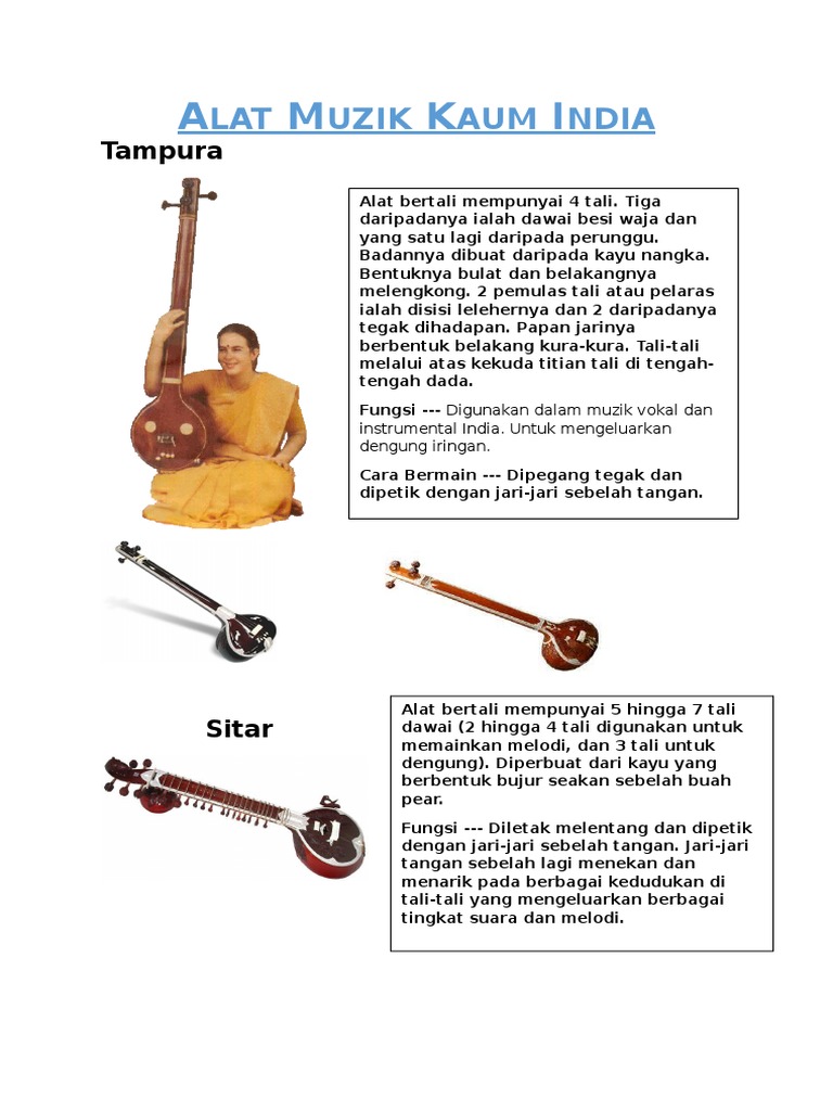 Alat muzik tradisional kaum india. Vijayamalar shima junn sam sze ni ozal mokhtar katerina kelimah 2. Definisi muzik karnati k 4. Alat ini dikatakan berasal dari gendang mridangam tabla mempunyai sepasang gendang iaitu sidda gendang kecil dan dagga gendang besar yang ada satu muka masing masing. Seperti gitar namun lebing cembung memiliki tiga ruang memiliki tiga senar melodi dan 35 senar simpatetis.
