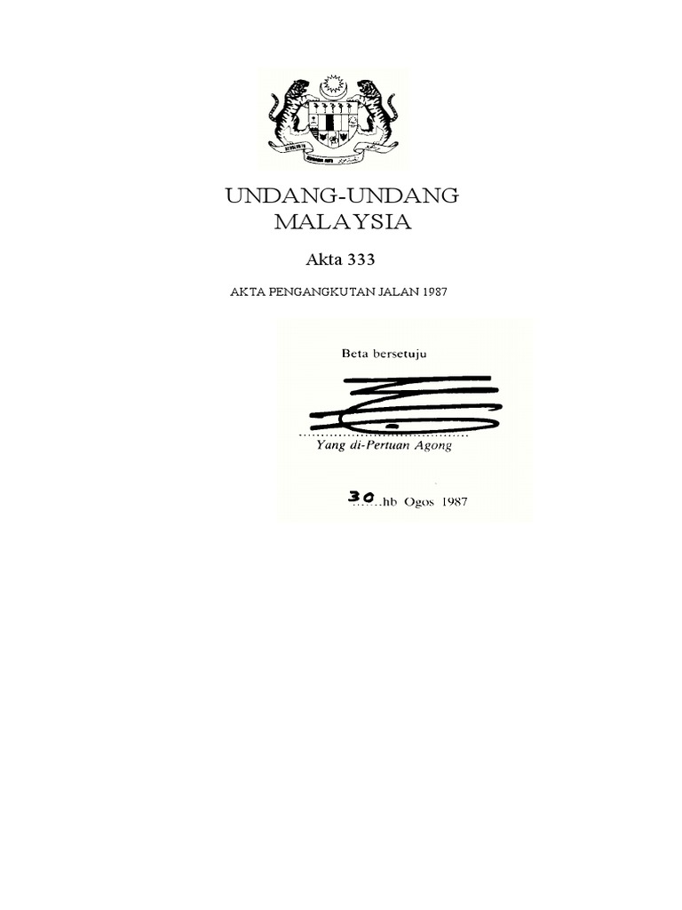 Akta pengangkutan awam darat pindaan 2017 58 akta pengangkutan jalan 1987 59 akta polis 1967 akta 344 seksyen 21 60 kesalahan dan penalti contoh kesalahan di bawah apad pindaan 2017 dan lesen psv 61 67 dasar 68 dasar bagi pemandu perkhidmatan kenderaan perkhidmatan awam pkpa 68 72. Akta 333 akta pengangkutan 1987 susunan seksyen b ahagian i permulaan seksyen 1. K uasa d ato b andar dan w arden lalu lintas. Akta pengangkutan jalan 1987.