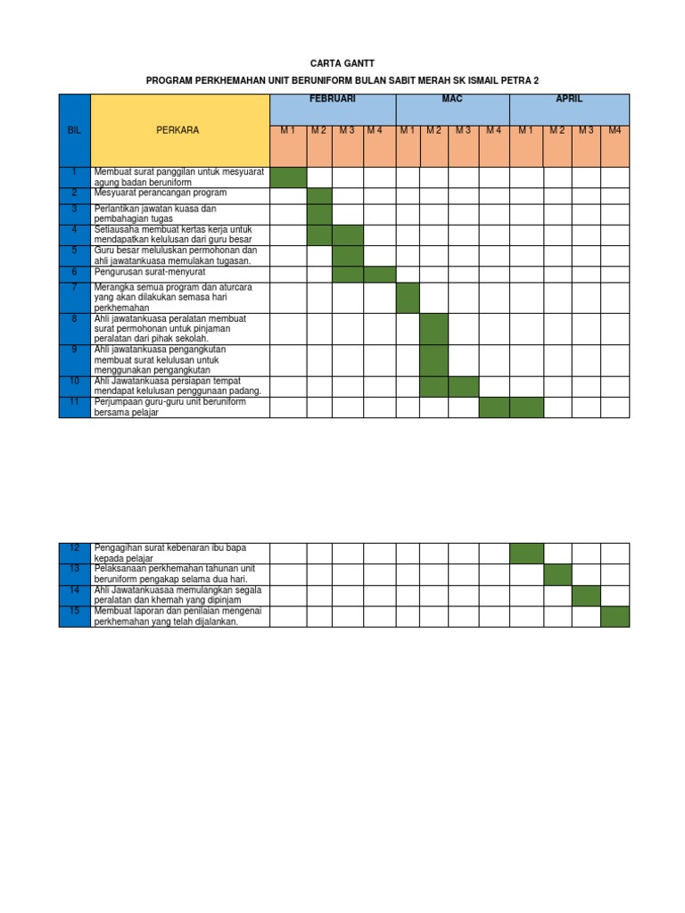 Carta gantt perlaksanaan kerja projek akhir diploma 1 tajuk. Carta gantt digunakan kerana ia dapat membantu pengurus mengenal pasti i. Kaedah perancangan ini tidak kehilangan kaitannya hari ini kerana ia membolehkan anda menyediakan paparan grafik rancangan pengeluaran memudahkan pemantauan kemajuan pelaksanaan tugas. Saya harap sedikit sebanyak dapat memberikan maklumat tentang cara pembinaan gantt chart.