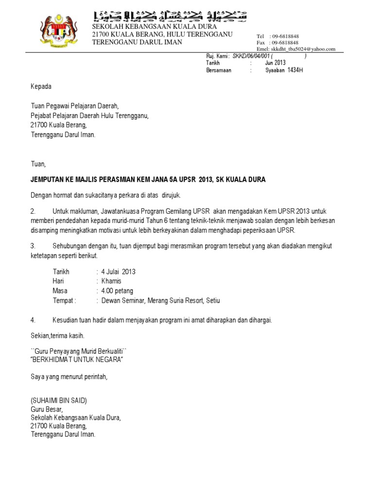 The collection that consisting of chosen picture and the best among others. Siti nurfatimah binti hussen setiausaha program berambeh bersama pelajar uum jabatan kebajikan masyarakat bahagian sibu tingkat 6 wisma sanyan no 1 jalan sanyan 96000 sibu tel. Surat mohon bantuan yb. Documents similar to contoh surat rasmi jemputan yb.