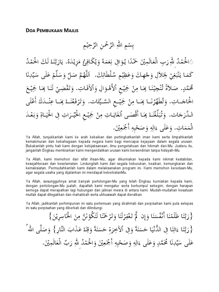 Contoh teks doa majlis rasmi. Teks doa pembukaan majlis. Di negara yang penduduk majoritinya adalah beragama islam seperti malaysia seringkali pembukaan majlis rasmi atau tidak rasmi dimulakan dengan bacaan doa ringkas bagi memberkati dan melancarkan perjalanan majlis. Kami panjatkan rasa kesyukuran kepada mu kerana dengan inayah dan rahmat mu dapat kami menyempurnakan pembukaan rasmi sekolah kebangsaan danau kota 2 pada hari ini. Contoh teks dalam bahasa inggris lengkap beserta artinya contoh teks dalam bahasa inggris lengkap beserta artinya.