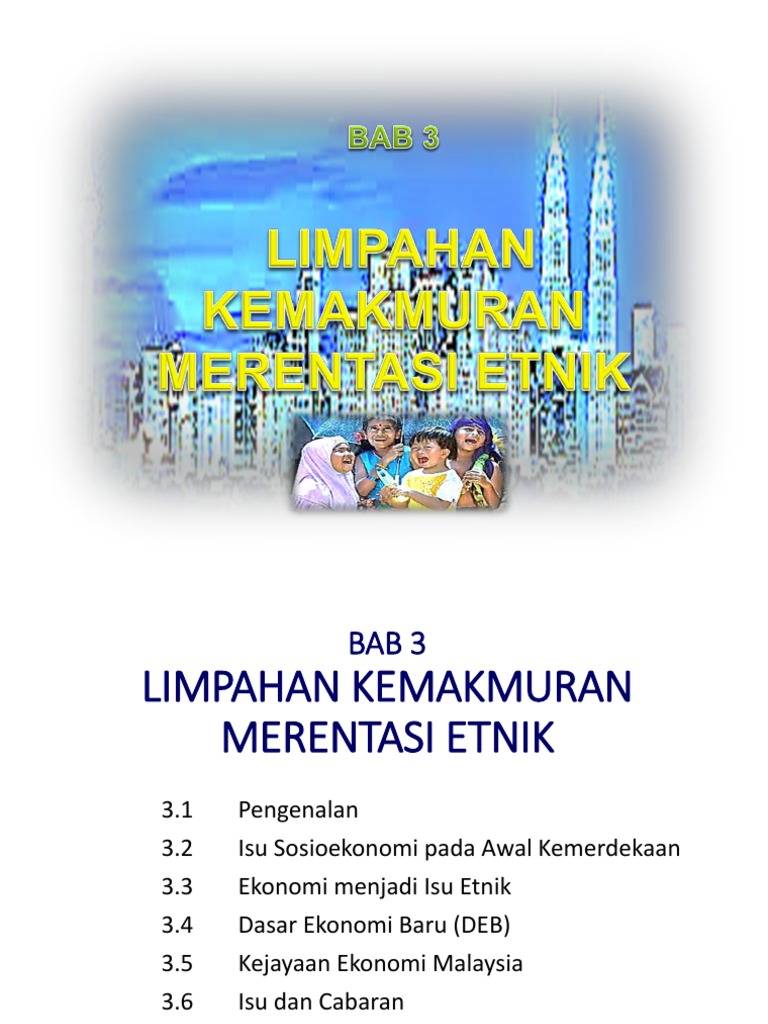 Bab 3 limpahan kemakmuran merentasi etnik 1. Bab 3 limpahan kemakmuran merentasi etnik 3 1 pengenalan 3 2 isu sosioekonomi pada awal kemerdekaan 3 3 ekonomi menjadi isu etnik 3 4 dasar ekonomi baru deb 3 5 kejayaan ekonomi malaysia 3 6 isu dan cabaran 3 7 kesimpulan. Model ekonomi baru meb bertujuan untuk menjadikan malaysia sebagai negara berpendapatan tinggi. 3 1 pengenalan 3 2 isu sosioekonomi pada awal kemerdekaan 3 3 ekonomi menjadi isu etnik 3 4 dasar ekonomi baru deb 3 5 kejayaan ekonomi malaysia 3 6 isu dan cabaran 3 7 kesimpulan 2.