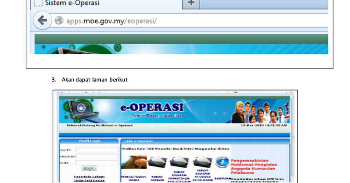 Layari laman web rasmi e operasi di halaman https eoperasi moe gov my. Kp yang telah didaftarkan. Login eoperasi kpm pendaftaran pengguna. Alamat emel ini dilindungi dari spambot.