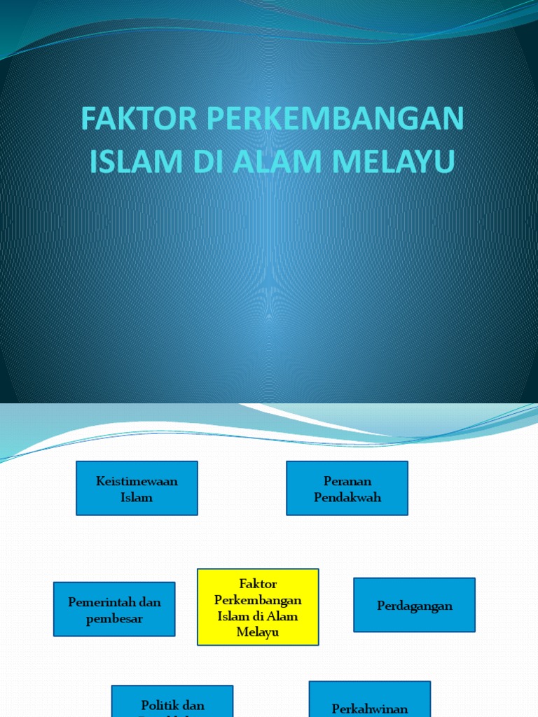 Terdapat juga pendapat pendapat yang berkaitan dengan dongeng seperti penerimaan islam di dalam hikayat raja raja pasai dan sejarah melayu. Faktor faktor perkembangan islam dialam melayu pendahuluan agama islam mula berkembang di alam melayu dalam abad ke 13 masihi. Faktor faktor penyebaran agama islam ke tanah melayu faktor perdagangan. Antara faktor faktor perkembangan islam di alam melayu ialah dari sudut politik ekonomi sosial dan sebagainya di samping ada yang menekankan faktor faktor perdagangan ahli sufi perkahwinan dan lain lainnya.