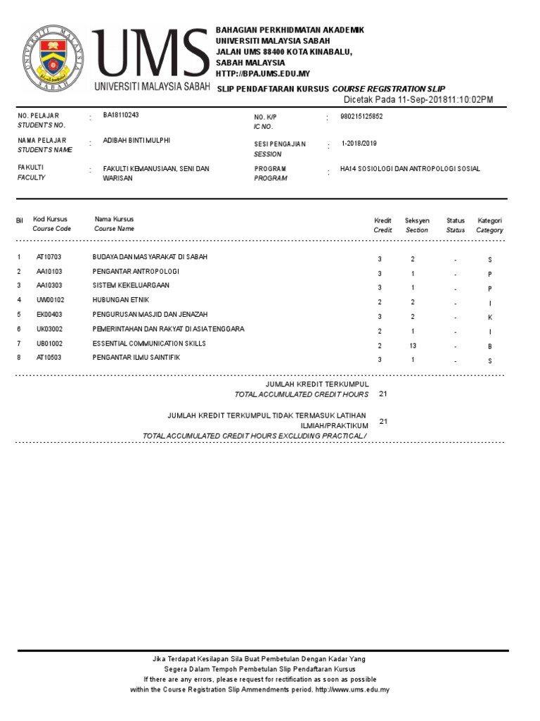 Jadual Kuliah Ums Semester 2 2019