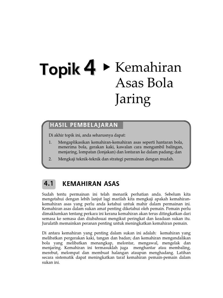 Kemahiran asas bola jaring. Kemahiran kemahiran asas bola jaring. Dalam permainan bola jaring gerakan kaki merupakan salah satu kemahiran penting yang perlu ada bagi semua pemain. Hantaran gerakan kaki kawalan lompatan jaringan lontaran halaman utama kuiz. Menjaringkan gol dengan sebelah tangan 4 6 1 menjaring sambil melompat cara ini sama juga dengan cara menjaring berdiri statik.
