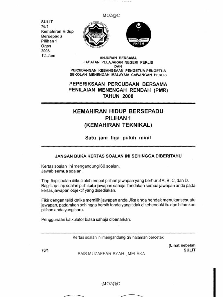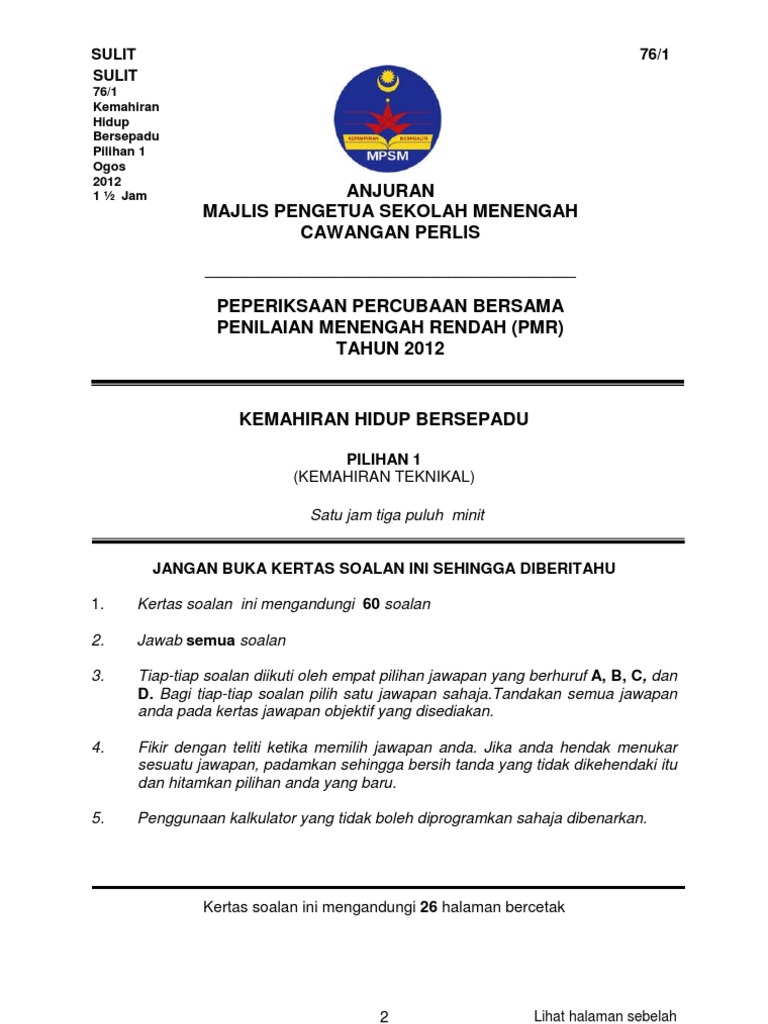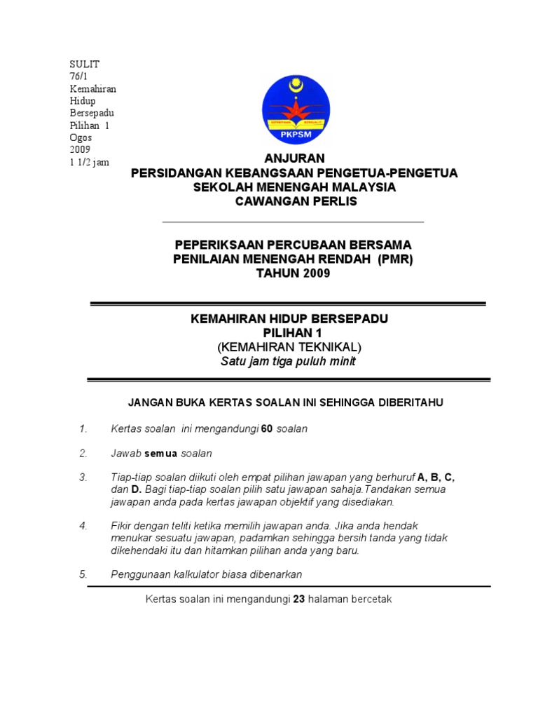 Kemahiran Hidup Bersepadu Pilihan 1 Pmr