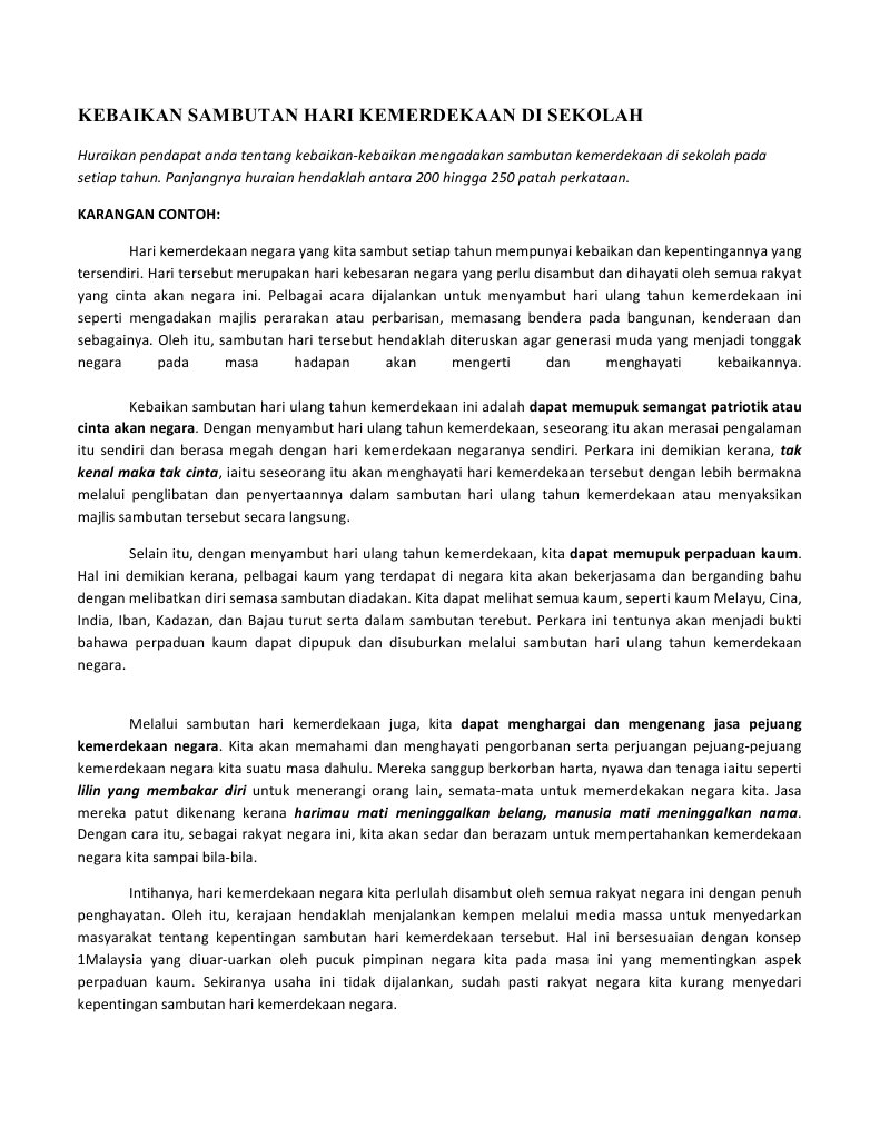 Kepentingan menyambut hari kemerdekaan stpm. 4 untuk meningkatkan imej negara melalui sambutan hari kemerdekaan imej negara kita akan turut meningkat. Salah satu kepentingan menyambut hari kemerdekaan di negara kita ialah kita dapat mengenang jasa tokoh yang telah berkorban demi mencapai kemerdekaan untuk tanah air. Kepentingan sambutan hari kemerdekaan di sekolah contoh karangan kepentingan sambutan hari kemerdekaan kepentingan menyambut hari kemerdekaan kepada masyarakat dan negara karangan kebaikan sambutan hari kemerdekaan di sekolah kertas kerja sambutan bulan kemerdekaan peringkat sekolah sambutan bulan kemerdekaan 2012 sambutan bulan kemerdekaan di sekolah sambutan bulan kemerdekaan di. Antara tokoh yang begitu berjasa kepada negara ialah tunku abdul rahman rosli dhobi rentap kanang dan sebagainya.