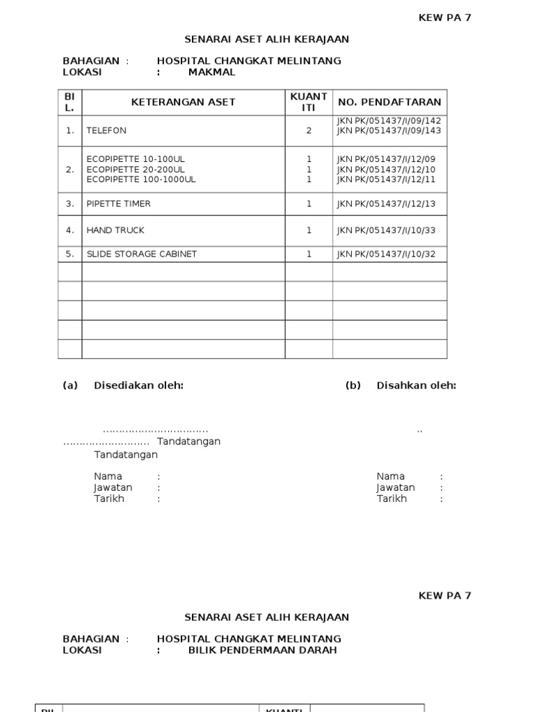 7 kew pa 7 senarai aset di lokasi saravana sundari k. Langkah 7 klik butang ok bagi mencetak borang kew pa 7 berdasarkan paparan yang dipilih klik butang ok bagi mencetak borang kew pa 7 berdasarkan paparan yang dipilih. 7 8 mengemaskini rekod kew pa 3 atau kew pa 4. Tempoh tindakan pelupusan tindakan pelupusan mengikut kaedah yang diluluskan hendaklah.