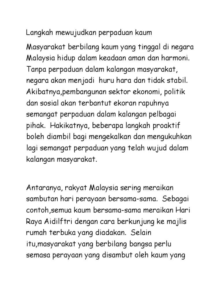 Langkah Langkah Yang Patut Diambil Untuk Membentuk Masyarakat Malaysia Yang Harmoni Dan Sejahtera