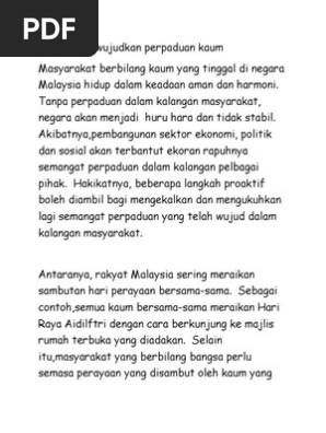 Jika slogan tersebut dibaca dengan teliti slogan tersebut sebenarnya membawa mesej bahawa masyarakat yang hidup bersatu padu dapat menjana kejayaan dan kecemerlangan negara. Malaysia sebagai negara maju sepenuhnya satu takrif. Jawabnya ya kerana untuk membentuk masyarakat yang aman dan berjaya kita tidak hanya boleh mengharapkan sebahagian sahaja daripada ahli masyarakat tersebut yang mematuhi undang undang dan nilai nilai baik bekerja dengan tekun serta menjalankan penyelidikan dan pembangunan manakala satu gologan lain dibiarkan untuk hidup berfoya foya melanggar undang undang melakukan jenayah malas dan. Sebagai pembuka bicara kita sudah sedia maklum bahawa perpaduan dan.