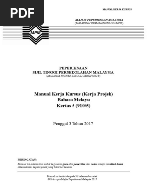 Manual ini khusus untuk kegunaan guru atau calon sahaja. Manual pelaksanaan kerja kursus p2 2017 format dan contoh penulisan esei kerja kursus p2 2017 soalan untuk calon swasta dan persendirian individu 2017. Penulisan esei berformat penggal 2 2017 tarikh hari dan masa 23 01 2017 isnin 10 30 pagi 11 50 pagi. Wajaran bagi kerja kursus ini adalah sebanyak 17.