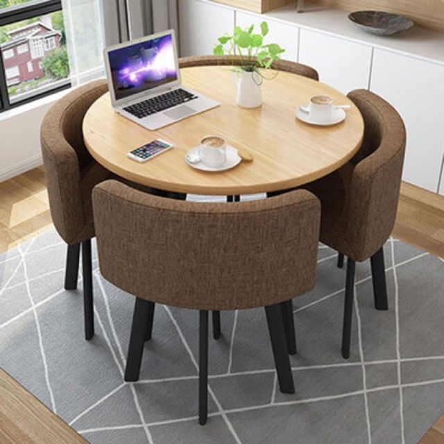Meja makan bulat 4 kursi multiple colors. Dengan bentuknya yang sangat simpel tentu jenis meja makan minimalis 4 seater ini cocok untuk diletakkan pada ruang makan yang tidak terlalu besar sehingga tidak menghabiskan banyak space ruangan.