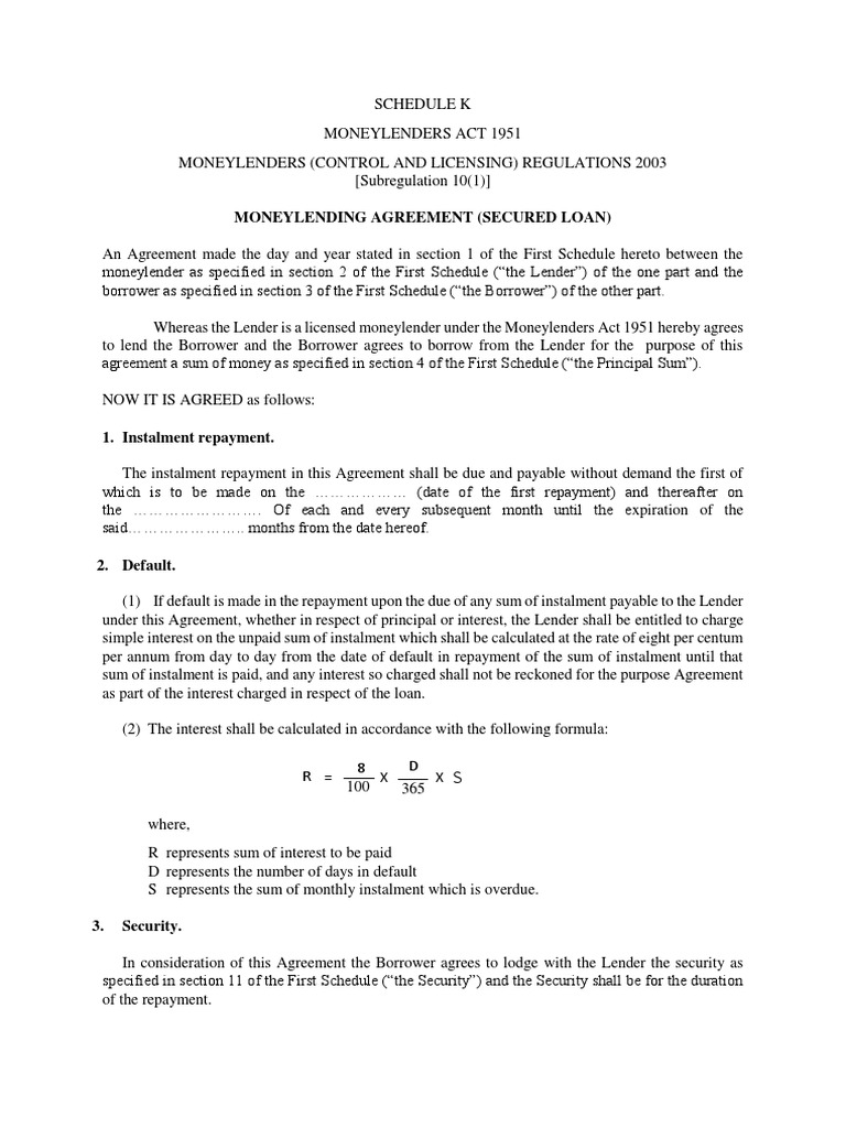 Money lending business is governed under the moneylenders act 1951 and administered by the ministry of urban wellbeing housing and local government. Any body corporate incorporated or empowered by an act of parliament to lend money in accordance with that act. Cannot be convicted of an offence against a body or property in the penal code chapters xvi and xvii cannot be a bankrupt. In short a moneylender.
