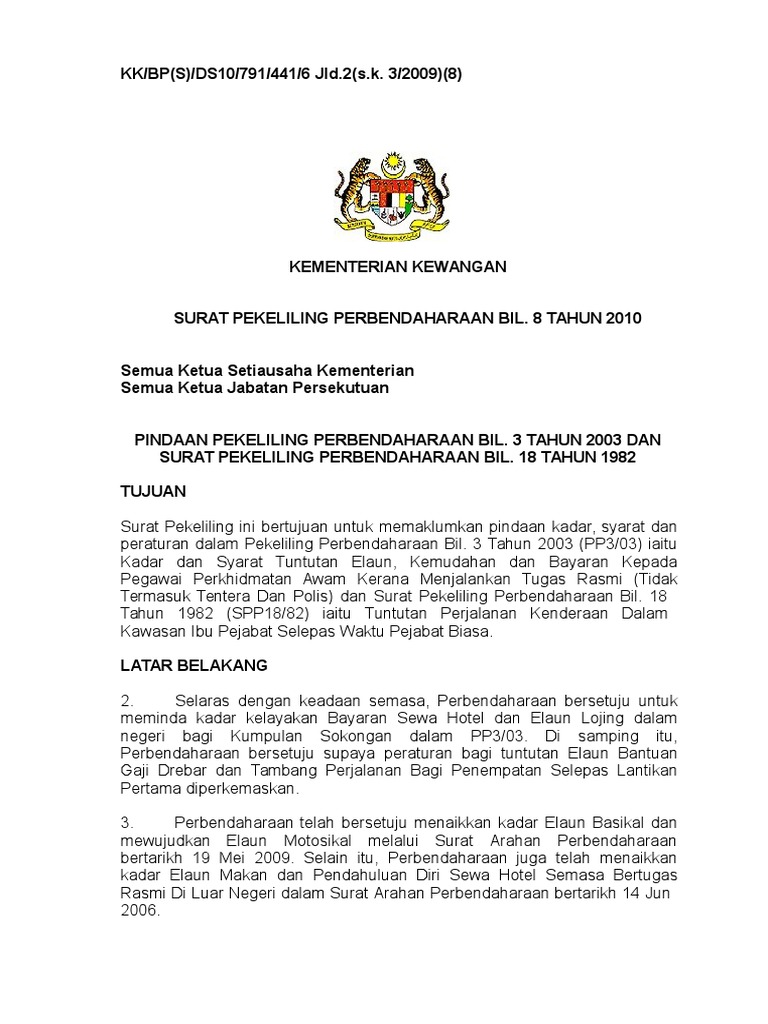 Kk bp10 656 2 1 s k 1 2003 kerajaan malaysia pekeliling perbendaharaan bil. 2 tahun 1999 2 tahun 2001 dan bil 4 tahun 2002. Kemudahan perbelanjaan perubatan untuk pegawai dan pesara perkhidmatan awam persekutuan di bawah pekeliling perkhidmatan bilangan 21 tahun 2009. 3 tahun 2003 kadar dan syarat tuntutan elaun kemudahan dan bayaran kepada pegawai perkhidmatan awam ker.
