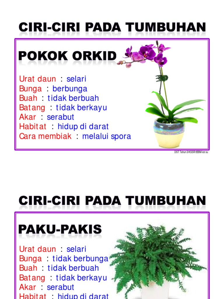 Contoh tumbuhan tidak berbunga. Pembiakan dan pertumbuhan. Secara rawak 15 orang murid daripada 34 orang pernah menanam pokok dengan berbagai jenis. Tumbuhan tidak berbunga membiak melalui spora.