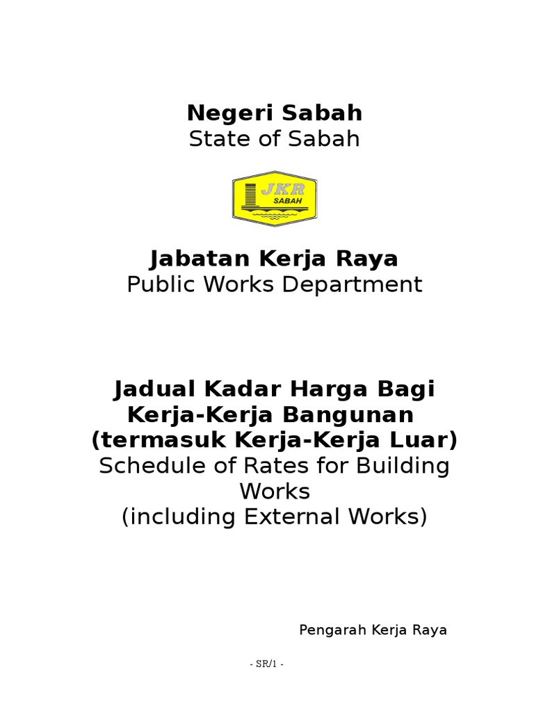 Schedule of rate jkr sabah. Negeri sabah malaysia schedule of rate jabatan kerja raya rates for brickwork and blockwork shall be held to include for all rough and fair cutting over sailing and receding courses rough relieving and discharging arches wedging and pinning raking out joints for and pointing flashings bedding plates bedding and pointing frames parging and coring flues labour caves filling plumbing. View 287998964 jkr schedule of unit rates pdf from fin 20100 at university of notre dame. Fadillah bdc flyover is safe for traffic use as no cracks observed 17 10 20. Beliong villagers to be connected with ferry service by 2022 18 10 20.