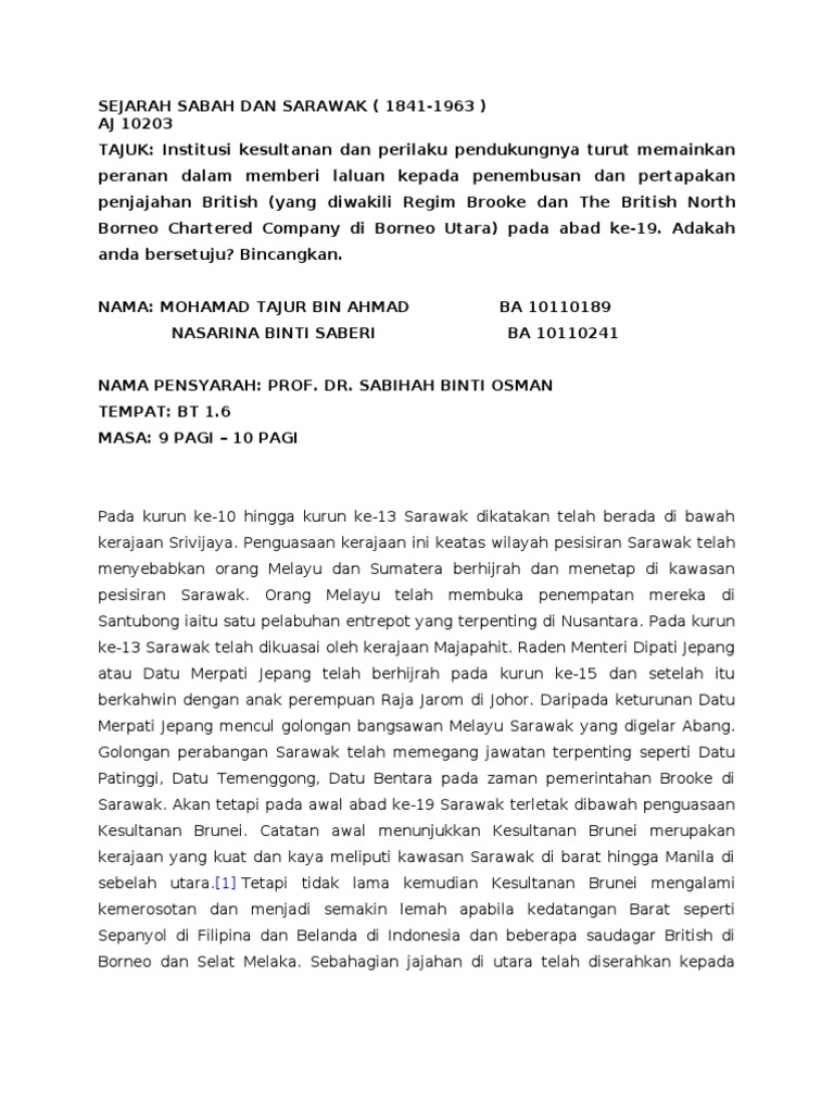 Sejarah sabah juga termasuk dalam sejarah brunei dan sejarah malaysia yang sebelum ini merupakan sebahagian dari brunei dan kini malaysia. 1 kelas sejarah cikgu meriam yusoff tingkatan 3 2020 bab 5. Sejarah sabah dan sarawak. Akah penentangan rentap dan sharif masahor di sarawak pada pertengahan aba e 19 dan penentangan mat salleh di borneo utara pada akhir abad ke 19 dapat ggap sebagai gerakan kebangsaan atau hanya dianggap sebagai satu tindak ba terhadap anasir anasir politik dan ekonomi yang baru.