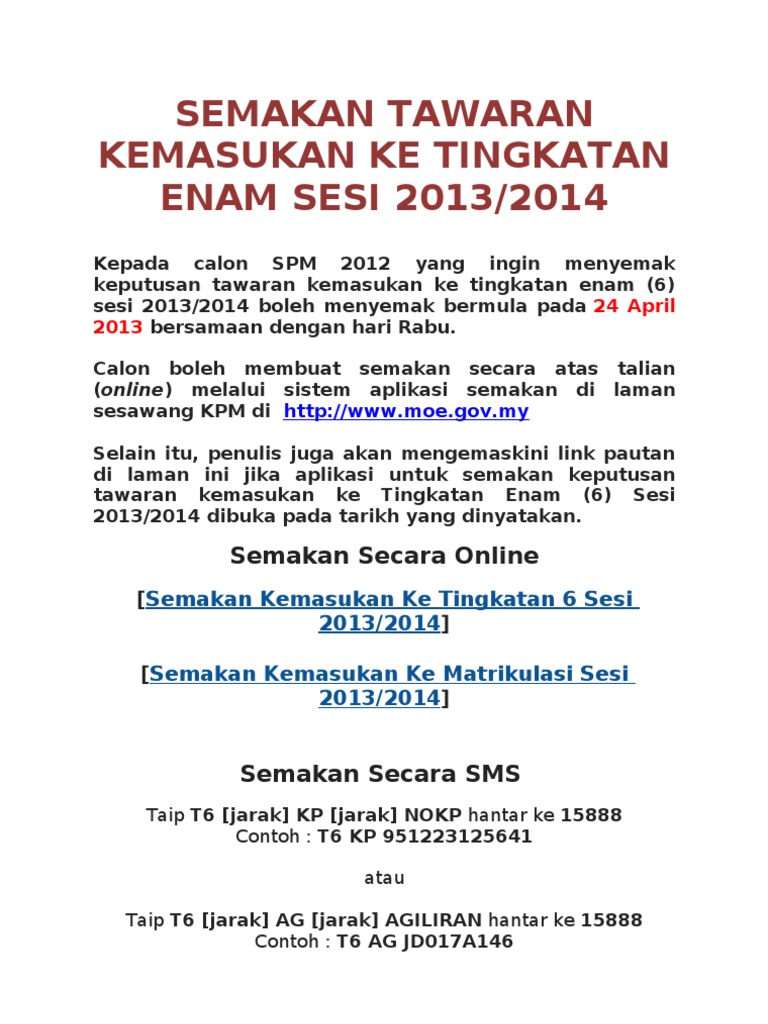 Semakan keputusan tawaran matrikulasi 2020 2021 online. Sedia maklum kemasukan pelajar ke matrikulasi bagi lepasan spm setaraf adalah berdasarkan prinsip meritokrasi dengan mengguna pakai 90 markah akademik dan 10 markah kokurikulum. Berdasarkan kepada tarikh tahun tahun sebelumnya semakan keputusan ke kolej matrikulasi 2020 dijangka akan diumumkan sekitar bulan april 2020 akibat pkp tarikh. Berdasarkan kepada tarikh tahun tahun sebelumnya semakan keputusan matrikulasi 2020 dijangka akan diumumkan sekitar bulan april 2020.