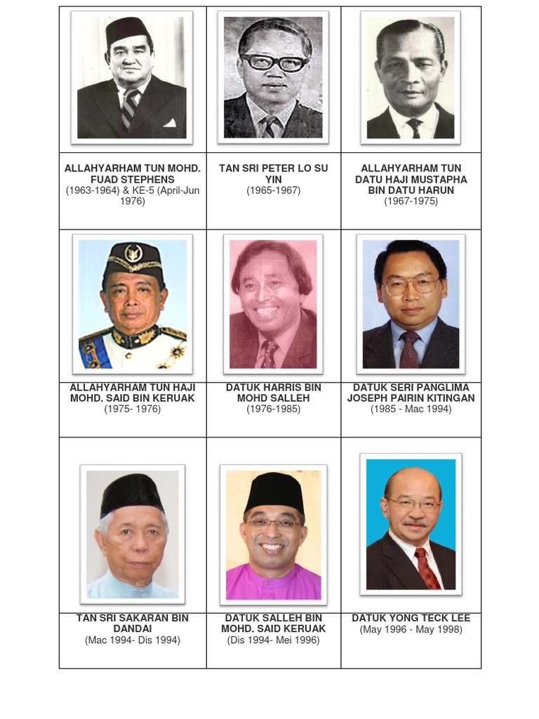 Senarai ketua menteri sabah. Datuk seri panglima hajiji mohd noor. Dato sri bung moktar bin radin. Bung moktar mengangkat sumpah sebagai timbalan ketua menteri sabah i di hadapan yang dipertua negeri sabah tun juhar mahiruddin di istana negeri sekitar jam 10 40 pagi pada selasa. 1 pembantu menteri kepada ketua menteri i.
