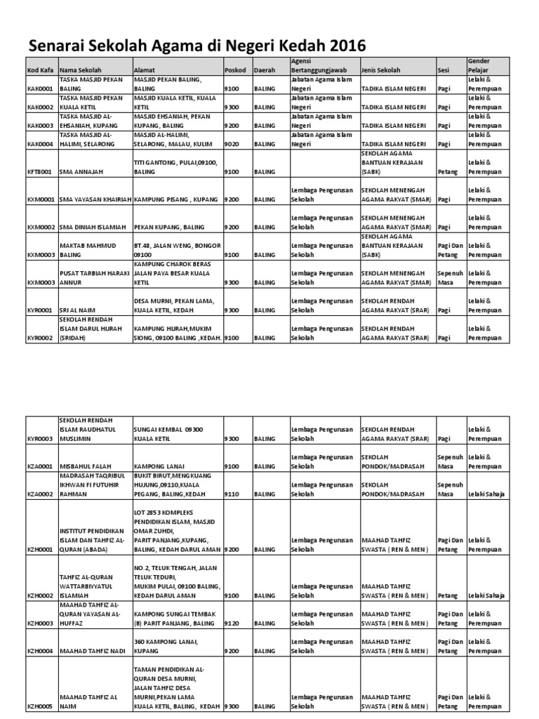 Senarai sekolah agama bantuan kerajaan di kedah. Murid sekolah kebangsaan sk sekolah bantuan kerajaan sbk sekolah agama yang berdaftar dengan pihak berkuasa negeri atau bahagian swasta kpm. Pentaksiran aktiviti jasmani sukan kokurikulum pajsk syarat khusus tmua a. Terutamanya bagi sekolah yang mana sesi persekolah telah pun bermula pada 2 januari 2020 yang lepas. Pengerusi jawatankuasa agama pendidikan sumber manusia yb brigadier jeneral b dato najmi ahmad berkata terdapat ramai negarawan di dalam negara ini lahir daripada sekolah agama negeri masing masing yang tidak boleh.