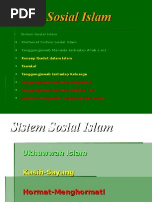 Sistem sosial islam bermaksud sistem perhubungan sesuatu kelompok manusia dengan kelompok yang lain dan mereka ini diikat dengan beberapa nilai yang ditetapkan oleh islam di bawah sistem ini terdapat unit sosial yang lebih kecil seperti sistem keluarga yang lazimnya terdiri daripada individu seperti suami isteri anak anak ayah ibu datuk dan nenek. Jadi orang yang menganggap bahwa islam tidak memberi penjelasan. Istilah ini juga apabila dihubungkaitkan dengan manusia membawa pengertian kepada sebarang kelakuan atau sikap yang dipengaruhi oleh pengalaman pengalaman dan tingkah laku orang lain yang telah lalu dan semasa sama ada secara langsung atau secara tidak langsung. 92 yang keanggotaannya mencakup ragam etnisitas yang paling luas tetapi komitmennya terhadap nilai nilai ideologi dan aqidah islam mengikat mereka dalam satu tata sosial yang spesifik.