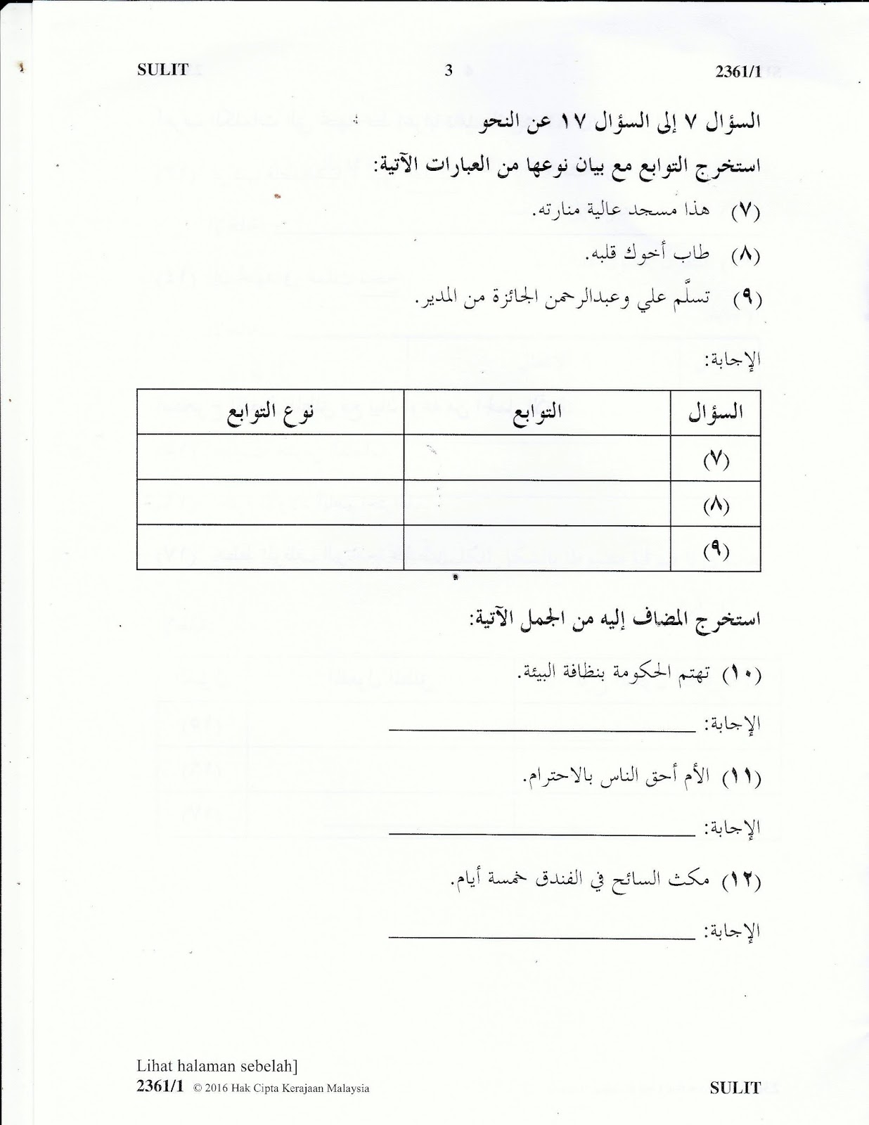 Kertas soalan peperiksaan percubaan trial paper bahasa arab spm 2016 sarawak 1. Kertas 1 pep akhir tahun ting 4 terengganu 2001. Soalan peperiksaan percubaan karangan jawapan karangan insyak bahasa arab tingkatan 3 pmr bahan bahan rujukan tingkatan 3. Calon wajib menduduki semua kertas peperiksaan bagi mata pelajaran yang didaftar.