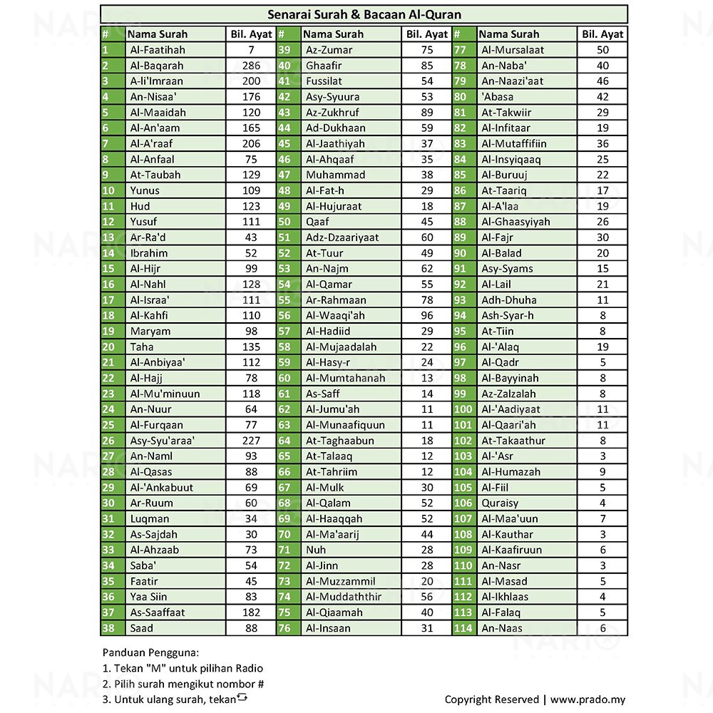 Surah my tidak bertanggungjawab di atas sebarang penyalahgunaan kandungan. Al qur an terdiri atas 30 juz dan 114 surah.