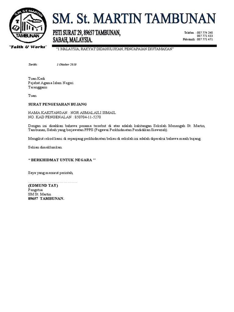 In these page we also have variety of images available. Surat akuan bujang ketua kampung click the start the download. Contoh surat rasmi pengesahan status bujang kumpulan contoh surat akuan bujang daripada majikan yang baik dan benar 2019. Search covid 19 stats updates disclaimer.