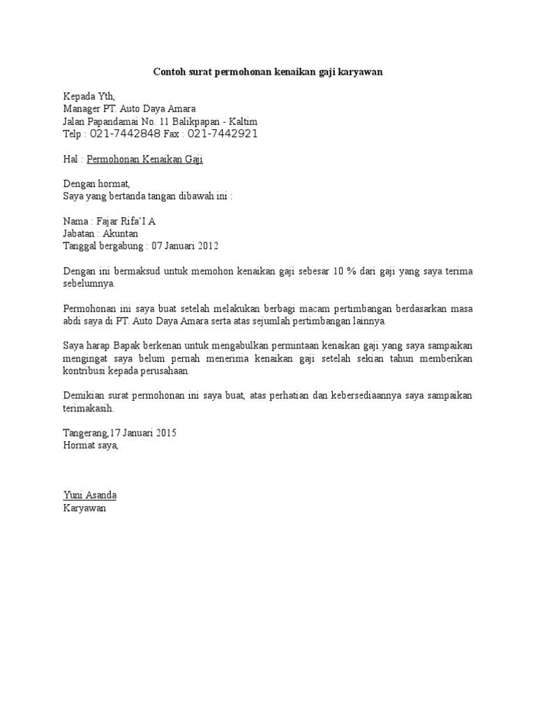 Surat Permohonan Kenaikan Gaji Pdf