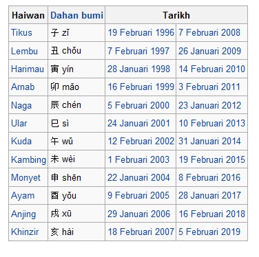 Tarikh tahun baru cina 2019. Nama nama dahan bumi tersebut bukan perkataan bahasa cina bagi haiwan haiwan tersebut. Tarikh berikut mungkin diubah suai. Israk mikraj kdh nsn pls 15 apr. Dimulai tahun baru cina 2020 hari raya aidilfitri 2020 hari deepavali 2020 hari kaamatan 2020 dan gawai dayak 2020.