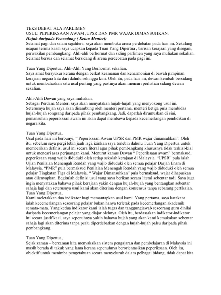 Teks bahas perdana menteri. Cikgu boleh x cikgu bagi contoh teks kerajaan untuk perdana menteri timbalan menteri ke 3 dan pnggulungan untuk tajuk kecemerlangan akademik menjamin kesejahteraan hidup saya tahu tajuk ni mungkin mudah tetapi saya masih tidak tahu bagaimana hendak mengeluarkan usul. Rangka karangan kata alu aluan pendahuluan tolak pindaan usul oleh pembangkang sokong definisi usul perdana menteri isi isi penting i. Yab perdana menteri penerbangan tambang murah menguntungkan pengguna terima kasih tuan yang dipertua dewan rakan rakan seperjuangan yang berkarisma delegasi kerajaan proksi pembangkang yang dimuliakan seterusnya saf saf perwakilan dan hadirin hadirat yang saya hormati sekalian. November 29 2018 at 6 16 am kiesha said.