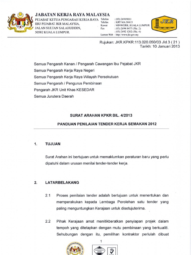 Jabatan kerja raya malaysia jkr kategori perolehan. Laman utama arkib keputusan tender. Menteri kerja raya baru bian berkata kementeriannya akan memastikan 30 peratus tender diberikan kepada kontraktor bumiputera menjelang tahun hadapan. Jika anda mempunyai sebarang aduan berkaitan rasuah penyelewengan salahguna kuasa serta perlanggaran tatakelakuan dan integriti yang melibatkan kakitangan di kementerian ini salurkan aduan tersebut di sini.