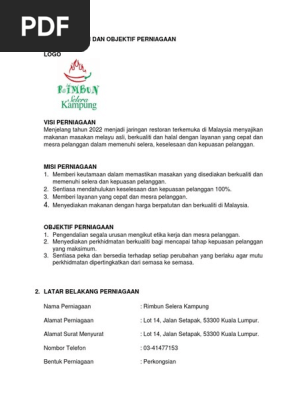 Visi misi dan objektif restoran. Kami mengharapkan kerjasama anda untuk menyempurnakan projek kami ini. Menyediakan kualitas unggul pelayanan prima dan pilihan terbaik kepada konsumen kami. Logo visi misi dan objektif logo. 2 menawarkan produk pada harga yang berpatutan dan menjanjikan rasa dan kualiti yang terbaik.